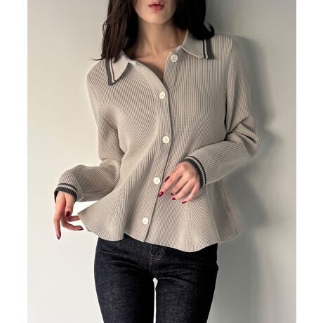 ポロ襟ライン入りペプラムデザインニット