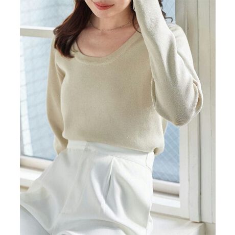 伸縮性に優れ、身体にフィットしすぎないサイズ感で快適な着心地叶う深Uネックニットトップス。