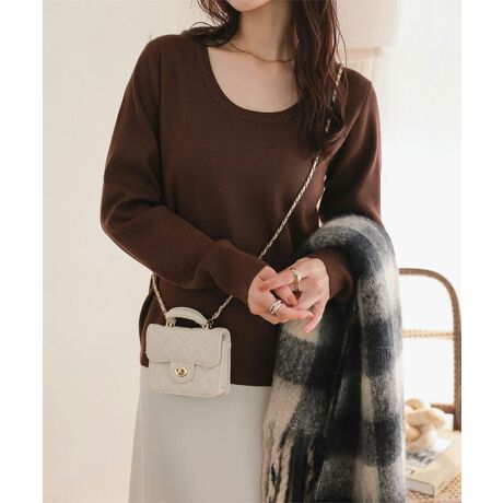 伸縮性に優れ、身体にフィットしすぎないサイズ感で快適な着心地叶う深Uネックニットトップス。