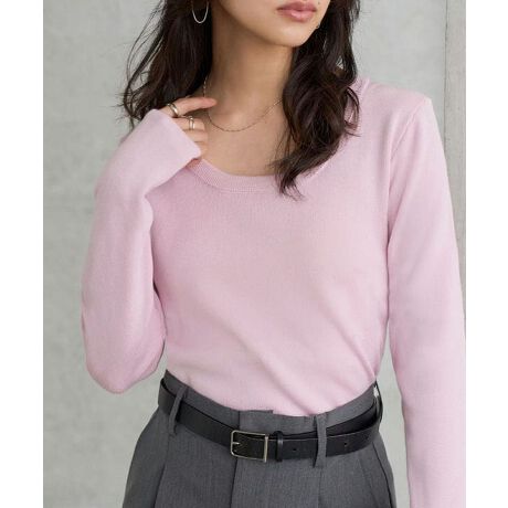 伸縮性に優れ、身体にフィットしすぎないサイズ感で快適な着心地叶う深Uネックニットトップス。