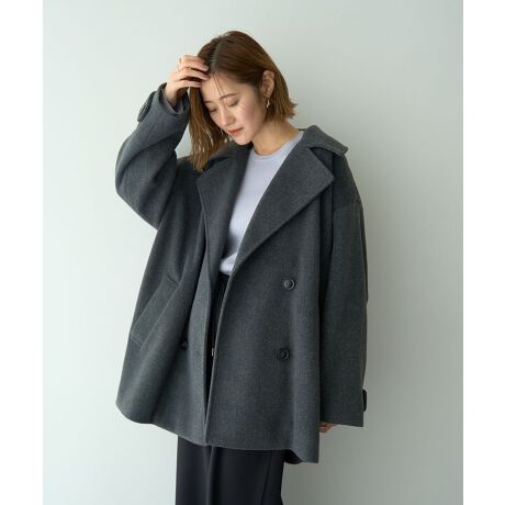 毛足のあるふっくらと暖かい生地で仕立てたデザインPコート。