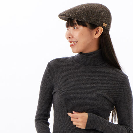 「ネップ(繊維の塊や節)」をあえて生地の表面に散りばめ、独特な表情と立体感、温かみを出したツイード生地、ネップツイードで作られたハンチング。