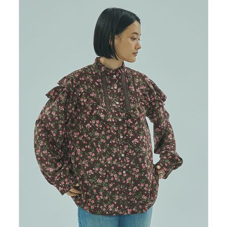 繊細なディテールが映える、クラシカルな花柄ブラウス