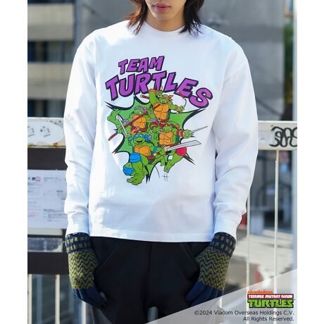 ホワイトとスミクロはタートルズが飛び出してきそうなプリントでインナーとしてはもちろん、一枚で着てもコーデの主役になります。