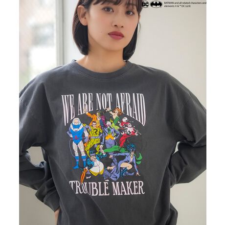 バットマンやヴィランズのクールなプリントロンTに、パウダーブリーチ加工を施すことで、細かい霜降り状の色落ちや加工特有のアタリ感が出て、ヴィンテージライクな、オリジナリティ溢れるデザインになりました。