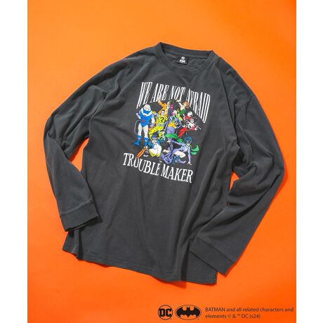 バットマンやヴィランズのクールなプリントロンTに、パウダーブリーチ加工を施すことで、細かい霜降り状の色落ちや加工特有のアタリ感が出て、ヴィンテージライクな、オリジナリティ溢れるデザインになりました。