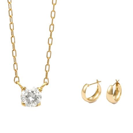 【2026冬福袋】K18ダイヤモンドネックレス・月甲ピアス