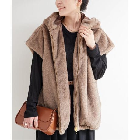 肌触りのよいミンク調フェイクファーを使用したベスト。