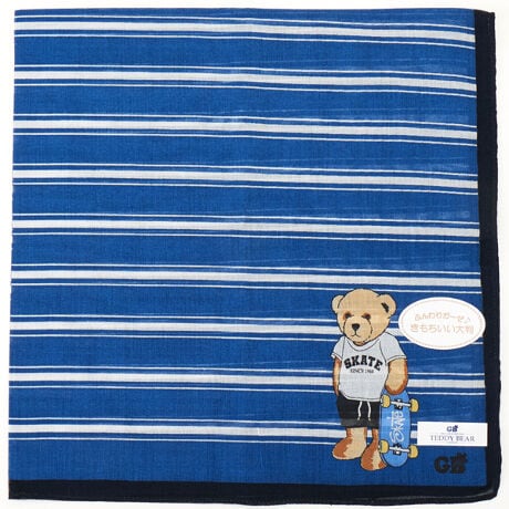 グレート・ブリティッシュ・テディベア プリントハンカチ ボーダー スケーターベア