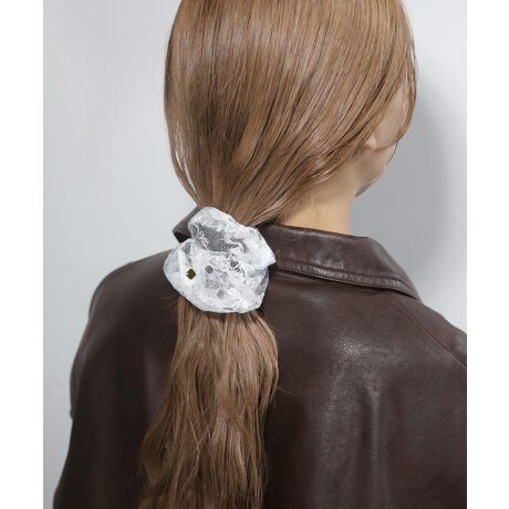 繊細なレースが、うしろ姿に華やぎを与えるシュシュ。