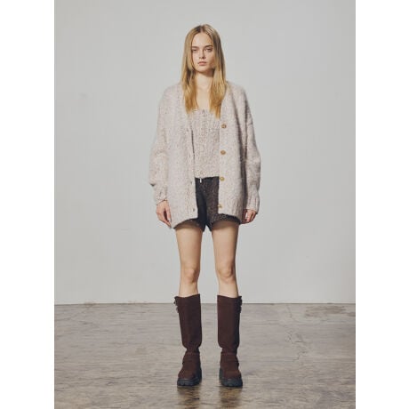 同素材で製作した<185404042 ミックスネップカーディガン>と<185407043 ミックスネップショートパンツ>とのセットアップがオススメ。