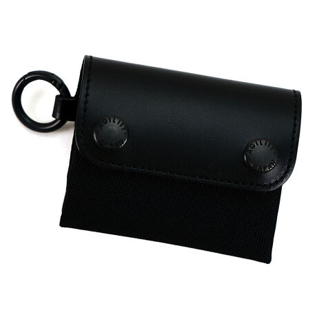 コンパクトに仕上げた撥水素材コンビの三つ折り財布です。【タフ×機能性】武骨なワークテイストを撥水ハイテク素材のコンビで都会的なイメージに仕上げました。縫製箇所を減らし折り紙のように折りたたむ構造で作ることで無駄なスペースを抑え、コンパクトに仕上げています。外側のファスナーポケットには小銭が10〜15枚程度収納可能。フラップを開けると内側には2つのカードポケットがあり、それぞれ3枚程度のカードが重ねて収納できます。カードの後ろ側のスペースには10枚程度のお札が折らずに入ります。上部についている革のタブ(カラビナ止め)に、お札を分けて挟むことができます。撥水スムースレザー×撥水コーデュラファブリック×YKK止水ファスナーのコンビで、表面は水をはじき急な雨やアウトドアなどでも重宝します。(完全防水ではありません)サイドについているリングカラビナは自由に着脱ができ、バッグやパンツに提げたり、ネックストラップなどにつければネックウォレットに、先端に鍵をつけたりと自由に機能拡張ができます。