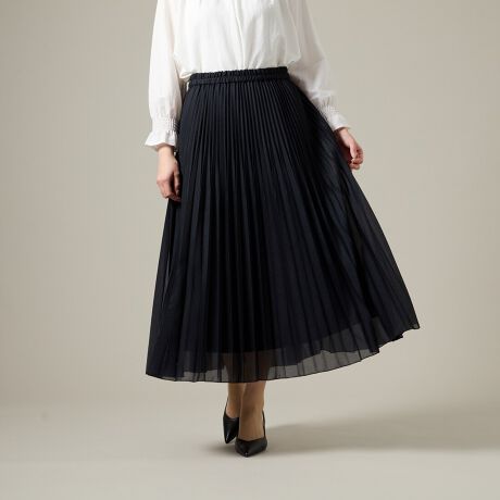 [型番:3260505]プリーツスカートは、女性らしさを引き立てる一枚。柔らかな素材感と大小違うピッチで加工した親子プリーツの綺麗な揺れ感が魅力です。ウエストはゴム仕様で着心地もよく快適です!シンプルなデザインだから、どんなトップスとも合わせやすく、様々なスタイリングを楽しめます。華やかさを演出したい日はもちろん、カジュアルな日常コーデにも活躍してくれます。裏付き 大きいサイズ ラクープ アルディラ#ココラーレ#cocolare