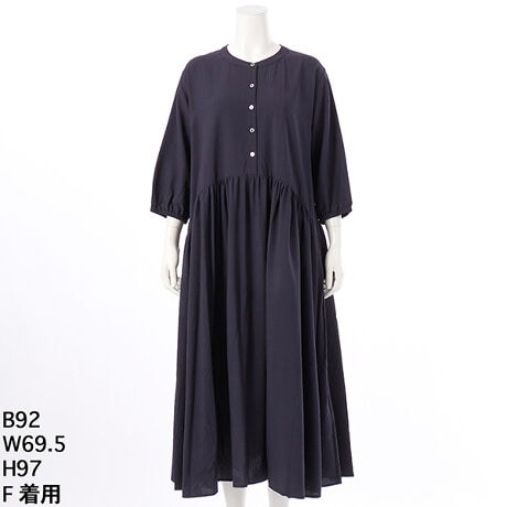 レーヨン綿の凹凸感がある素材でさらっとした着心地で、洗いざらしのままでも、ハンガーで乾かすだけでアイロンいらずに着られるワンピースです。