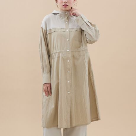 裾に向かって広がるAラインと、背中のボックスタックが体のラインを拾わず、気になる腰回りやお尻をすっぽりカバー。