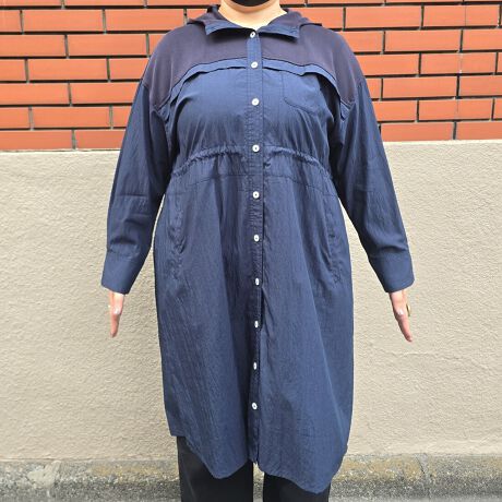 ポンチ素材(カットソーのような伸縮性のある素材)と、ハリのあるシャツ素材を組み合わせた「異素材ドッキング」のデザインコートです。