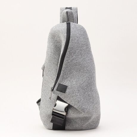 [型番:07-00XM04-205]ベータメンで売れ筋のネオプレン素材を使用したボディーバッグのミドルサイズです。同型ですが、コムサメンブラック版となり新たに展開します。内容量やシステムはそのままに、新たになった部分は、ロゴプレートが黒の牛革の型押しで高級感のあるものに変更し、バックルもシルバーメッキからブラックニッケルにリニューアル全体的に落ち着いた印象にリニューアルされ、ビジネス用途にも使いやすくなっています。