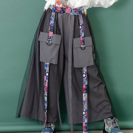 脚を閉じたときにスカートのように見えるひらひら感がカワいい異素材レイヤード風パンツ!
