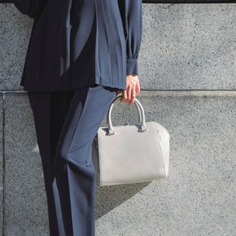 お仕事やセレモニーでもお使いいただけるしっかりフォルムと素材感が上品な、膝に収まるサイズ感が人気のトートバッグ。