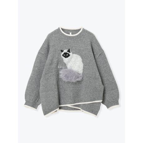 [型番:25410691651]ふわふわのファー素材で表現したネコモチーフが愛らしいプルオーバー。立体感のあるデザインで、着るだけで季節感と遊び心をプラスします。裾のクロスディテールがシルエットに動きを出し、抜け感のある印象に。デニムやスカートに合わせて、大人可愛いカジュアルスタイルに。Hare no hi/ハレノヒ