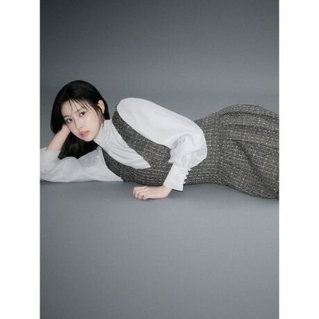 全色オリジナルでお作りしたキラキラと華やかなツイード生地を使用したVネックツイードミニジャンスカです。深めに開けたVネックデザインで抜け感を出し、着用しやすいひざ丈で仕上げました。豪華な衣装糸やスパンコール入りの糸など、華やかで上品な糸を多数組み合わせ、光を放つスペシャルなデザインに。袖口や裾に上品なフリンジディテールを加えているのもポイントです。腰よりも下の位置で切り替えしを入れ、ストンとしたシルエットで仕上げているので、気になる腰回りカバーします。切り替え下は女性らしいフレアシルエットになるように、脇にはプリーツを入れてレディに仕上げました。左右にポケットが付いています。シアー感のある生地で仕上げたオーカンシースルーブラウス(SWFB255162)合わせもおすすめです。