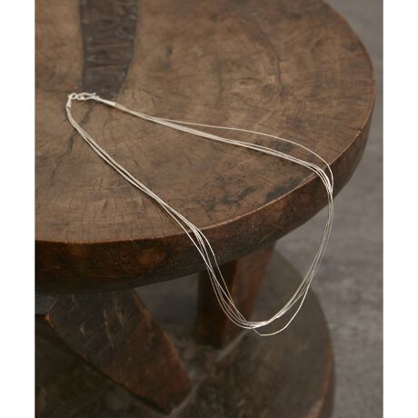 極細のスターリング製シルバービーズを連ねたネックレス。 こちらは5連60cmタイプ。