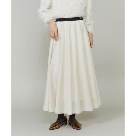 ■デザインナローなシルエットのフレアスカート。シェルプリーツによるフレアーは、程よく身体に沿いながらきれいなシルエット。ウエストゴムのデザインで穿き心地の良さは抜群です。さまざまなシルエットのトップスと相性も良く、秋冬のデイリーボトムとして幅広く活躍してくれる万能なアイテムです。■素材横糸にスパンポリエステルを使用したオーガンジー。珍しい中肉のオーガンジーです。軽さがあり程良い光沢感と透け感のある素材です。・ウエストゴム仕様・裏地あり・左サイドファスナーあり・ポケット無し■サンプル撮影商品画像の商品はサンプルです。実際の商品とはサイズや色味、素材、デザイン等の仕様が若干変更になる場合がございます。■カラーについては、可能な限り実際の商品に近いカラーで撮影をおこなっておりますが、照明の関係により実際の製品とは色味が違って見える場合があります。またパソコン・スマートフォンなどの環境により、若干製品と画像のカラーが異なる場合もございます。現物と画像のカラー差異については返品理由となりませんので、予めご了承ください。■サイズ表記はあくまで目安となります。