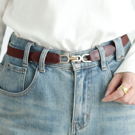 ゴールドのバックルがアクセントになった細身のゴムベルトです。バックルは取り外し可能で、ベルトループに直接取り付けられる2way仕様。後ろ側はぐーんと伸びるゴムで、窮屈感なくウエストにフィットしてくれます。フリーサイズで調節可能の金具付きで、どんな体型の人にも合うのも◎。きれいめ、カジュアルにもマッチするシンプルさも魅力の一つ。くびれを作って腰高見せも楽ちん、一本あると重宝する小物アイテムです☆