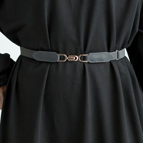 ゴールドのバックルがアクセントになった細身のゴムベルトです。バックルは取り外し可能で、ベルトループに直接取り付けられる2way仕様。後ろ側はぐーんと伸びるゴムで、窮屈感なくウエストにフィットしてくれます。フリーサイズで調節可能の金具付きで、どんな体型の人にも合うのも◎。きれいめ、カジュアルにもマッチするシンプルさも魅力の一つ。くびれを作って腰高見せも楽ちん、一本あると重宝する小物アイテムです☆