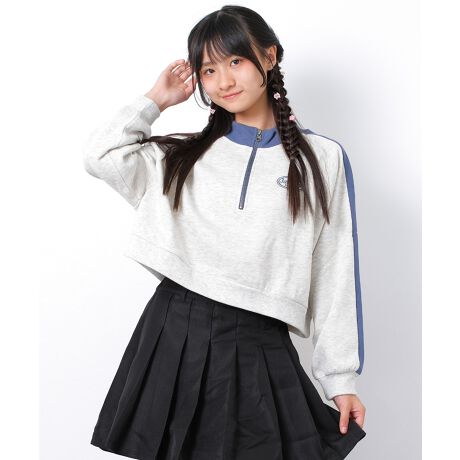 サイドラインが施されたスポーティな印象の裏起毛ハーフジップトレーナーです。コンパクトな丈感が女の子らしく、ヘルシーなストリートコーデにぴったり◎スカートを合わせたトレンドのミックスコーデもおすすめです。