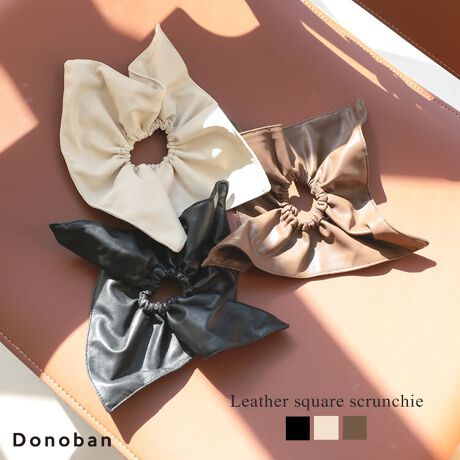 上質なフェイクレザーを使用したスクエア型のボリュームが可愛いシュシュ。