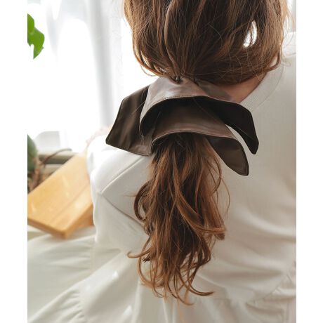 上質なフェイクレザーを使用したスクエア型のボリュームが可愛いシュシュ。