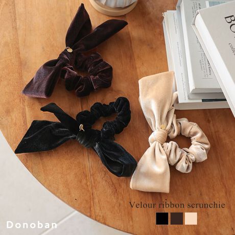 ベロアリボンに、小さめなゴールドチャームが揺れるシュシュ。