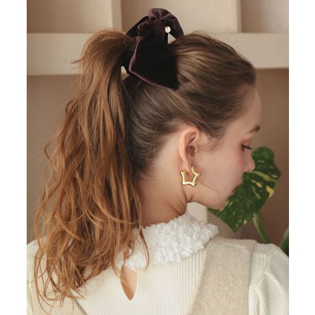 ベロアリボンに、小さめなゴールドチャームが揺れるシュシュ。