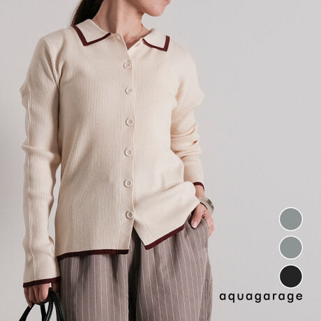マルイウェブチャネル   /   アクアガレージ   /   トップス   /   カーディガン   /   襟付きリブニットバイカラーカーディガン