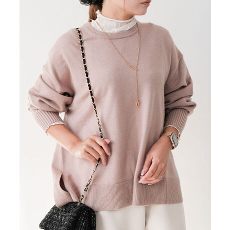 ゆったりとした落ち感が魅力の、サイドスリット入りニットプルオーバー。