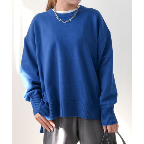 ゆったりとした落ち感が魅力の、サイドスリット入りニットプルオーバー。
