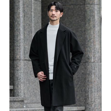 格式高い印象を演出するダブルチェスターデザインのメルトンコートです。雰囲気のあるデザインなので、コートの下はシンプルなスタイリングで充分お洒落な着こなしに。シルエットは昨今トレンドのオーバーサイズアイテムを中に着たとしてもごわつかないようにルーズめに設計しました。クラシックな印象のダブルコートは普段着にだけでなく、スーツスタイルにも合わせられます。温かみのあるメルトン生地と重厚でお洒落なデザインによってワンランク上の冬の装いに仕上げてくれる一着です。