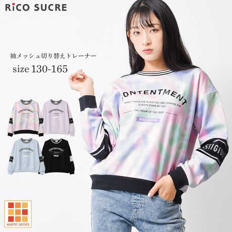 裏起毛袖メッシュ切り替えトレーナー。袖がメッシュ切り替えデザインのトレーナーです。メッシュ部分にロゴも入っており、細部までこだわりが詰まったデザインです。RiCO SUCREで人気のタイダイ柄もご用意しております。