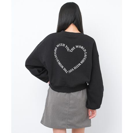 裏起毛ハートロゴプリントショートトレーナー