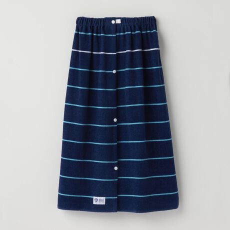 [型番:124426]ボーダー柄デザインのシンプルなラップタオル。水分をしっかり吸収してくれる安心の綿素材。優しい手触りで、水から上がったときの冷え防止や紫外線対策にも◎スナップ釦で簡単に開け閉めできるので、タオルの中でも簡単に着替えができます。ゴム入りでズレ落ちにくい仕様になっています。学校のプールやお風呂上がり、レジャーなどでも大活躍!
