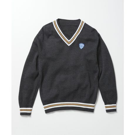 [型番:140904]男女兼用で使えるスクールセーター。ライン入りのベーシックなデザインなので通学にオススメです。