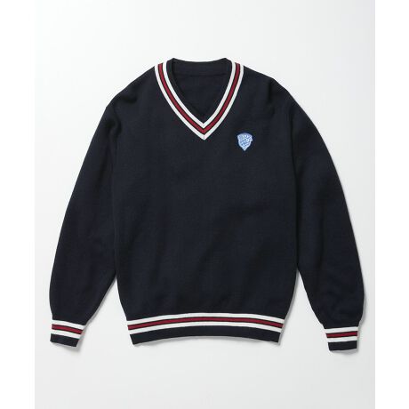 [型番:140904]男女兼用で使えるスクールセーター。ライン入りのベーシックなデザインなので通学にオススメです。