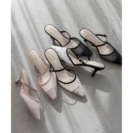 シアー生地が軽やかな足元を演出してくれるミュールパンプス。