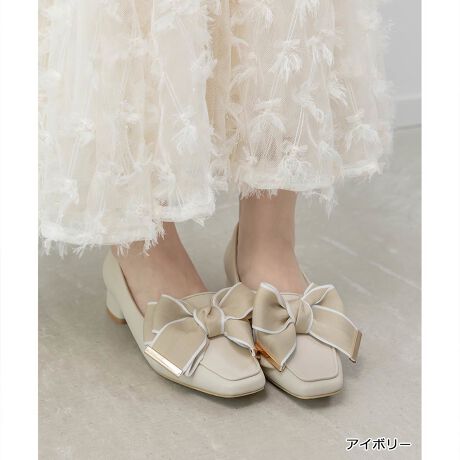 フロントにあしらったボリューム感たっぷりなリボンが存在感を放つローファー。