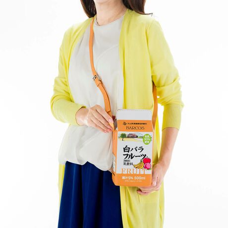 パッケージデザインをそのまま落とし込んだ、牛乳パック型ショルダーポシェットです。