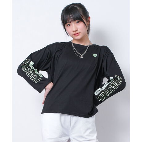 筆記体ロゴロンT。人気の筆記体ロゴ刺繍のロンTです。筆記体ロゴにすることでティーンズデザインながらガーリーな雰囲気もある印象に。ビッグシルエットなのでトレンドスタイルを楽しめる1枚です。