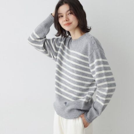 カシミヤ混のウールを使用した肩ボタンマリンセーター。