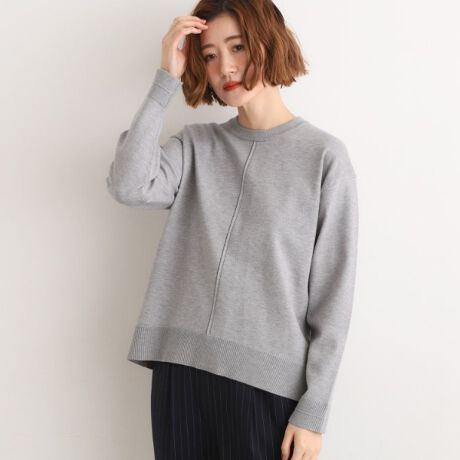 後ろ下がりのデザインで、スカートパンツ両方に合わせやすい丈感。