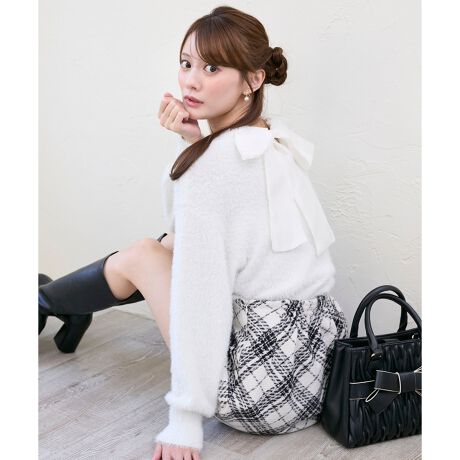 バックリボンがアクセントに♪さりげなくきらっと輝くラメシャギーニット
